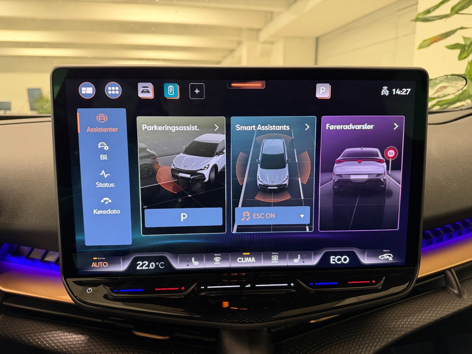 Mørktonede ruder, Full LED forlygter, Håndfri elektrisk bagklap, Alufælge, Træthedsovervågning, Klimaanlæg, CUPRA multifunktionslæderrat, Opvarmet rat, Trafikskilte genkendelse, KESSY advanced, Digitalt cockpit, Trådløs oplader, Varmepumpe, Bakkamera, White Silver