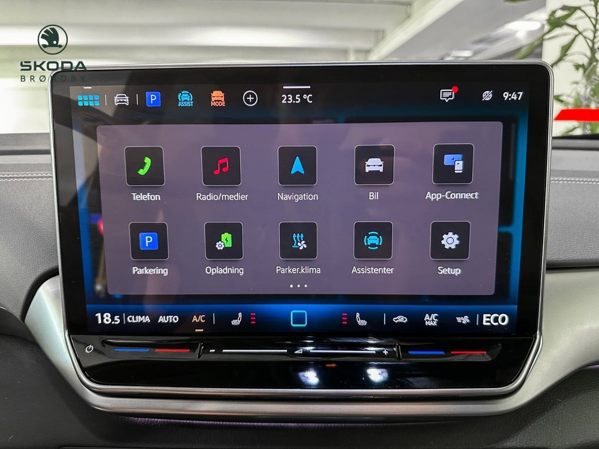 Ekstraudstyr kørecomputer, multifunktionsrat, digitalt cockpit, ambiente belysning, 19" alufælge, el-klapbare sidespejle m/varme, matrix led forlygter, mørktonede ruder i bag, automatgear, 2 zone klima, varme i rat, varmepumpe, nøglefri adgang, adaptiv fartpilot, fartpilot, elektrisk kabinevarmer, centrallås, nøglefri tænding, sædevarme, 4x el-ruder, el betjent bagklap, fod betjent bagklap, trådløs mobilopladning, elektrisk parkeringsbremse, dab+ radio, usb-c tilslutning, navigation, android auto, apple carplay, håndfrit til mobil, 360° kamera, regnsensor, bakkamera, parkeringssensor (for), parkeringssensor (bag), træthedsregistrering, auto hold, blindvinkelsassistent, automatisk nødbremsesystem, stemmebetjening, vognbaneassistent, isofix, skiltegenkendelse