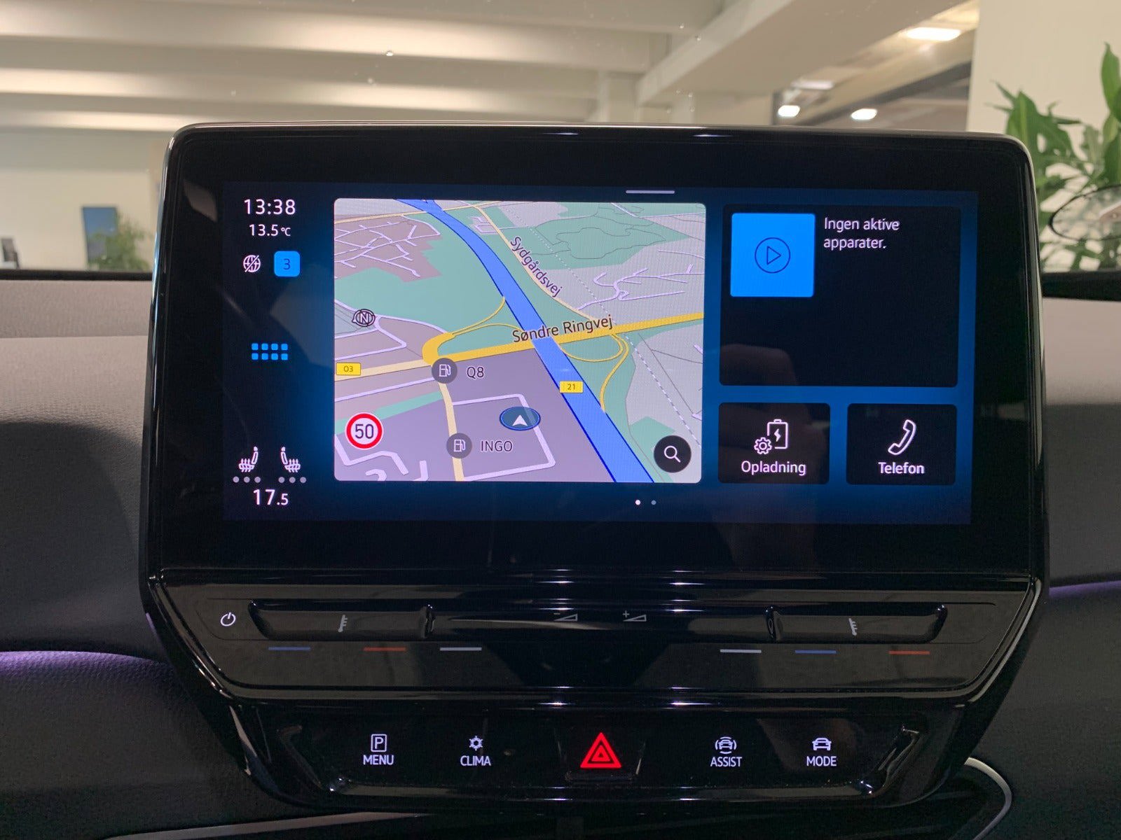 parkeringssensor (bag), adaptiv fartpilot, elektrisk parkeringsbremse, navigation, android auto, apple carplay, håndfrit til mobil, dab+ radio, musikstreaming via bluetooth, usb-c tilslutning, multifunktionsrat, ambiente belysning, digitalt cockpit, el-klapbare sidespejle m/varme, automatgear, sædevarme, varme i rat, parkeringssensor (for) |