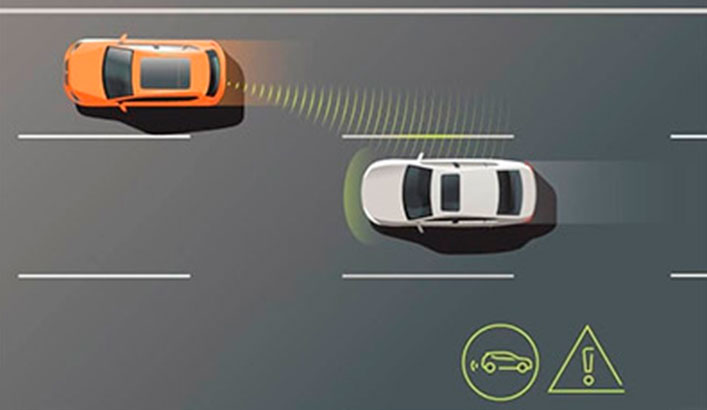 Side & Exit Assist* bruger avancerede sensorer til at overvåge blinde vinkler, når du skifter bane, svinger ud af fra en sidevej eller forlader bilen.